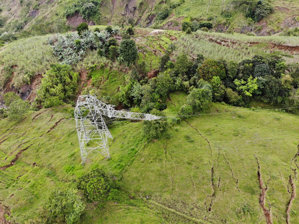 Dentro del proceso de permanente monitoreo geológico que estamos desarrollando desde que llegamos al sitio, hemos evidenciado que el movimiento del terreno continúa, lo cual quedó plasmado este jueves con la ruptura de la torre que estaba averiada. En este sentido, continuamos trabajando en el análisis de alternativas que nos permitan poner en operación la línea de transmisión, tratando incluso de disminuir los tiempos ya comprometidos en el plan de trabajo presentado este jueves.