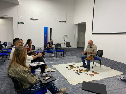 Un espacio dirigido por Fernando Bustamante Clavijo, Antropólogo – Arqueólogo, Magíster en Antropología Facultad de Ciencias Sociales y Humanas de la Universidad de Antioquia, para elaborar y hacer uso de las herramientas de piedra, artefactos recuperados en investigaciones arqueológicas, y que usualmente se ven en museos.