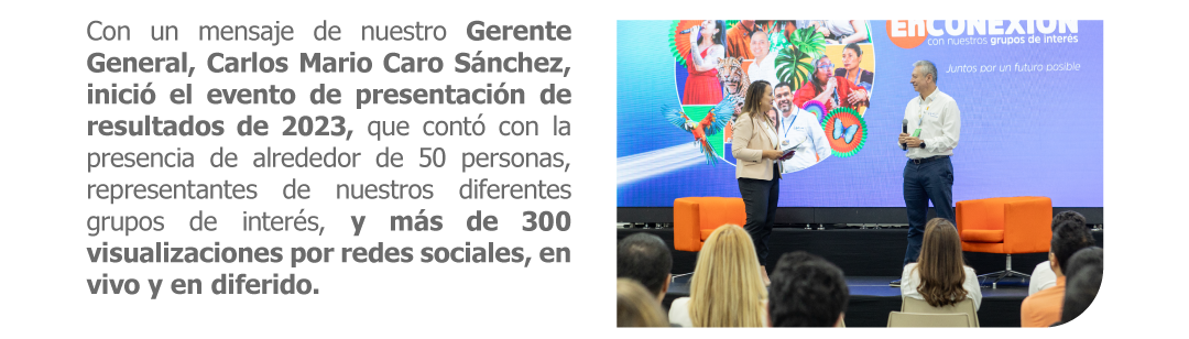 En un evento realizado en nuestra sede en Medellín y transmitido por redes sociales, el 23 de abril, presentamos al país nuestros resultados del año anterior. Conoce aquí los hechos y datos más relevantes de nuestra gestión.