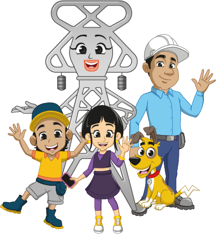 Eloísa Latorre tiene cuatro amigos: Rayo, Dina Mo, Juan Corrientes y Pedro Corrientes. Juntos enseñan a los niños, jóvenes y docentes de muchos rincones del país, sobre temas relacionados con energía, convivencia con las torres, medio ambiente, entre otros.