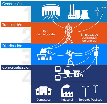 Para disfrutar de la electricidad se requieren cuatro procesos: generar energía, transportarla, distribuirla y comercializarla.