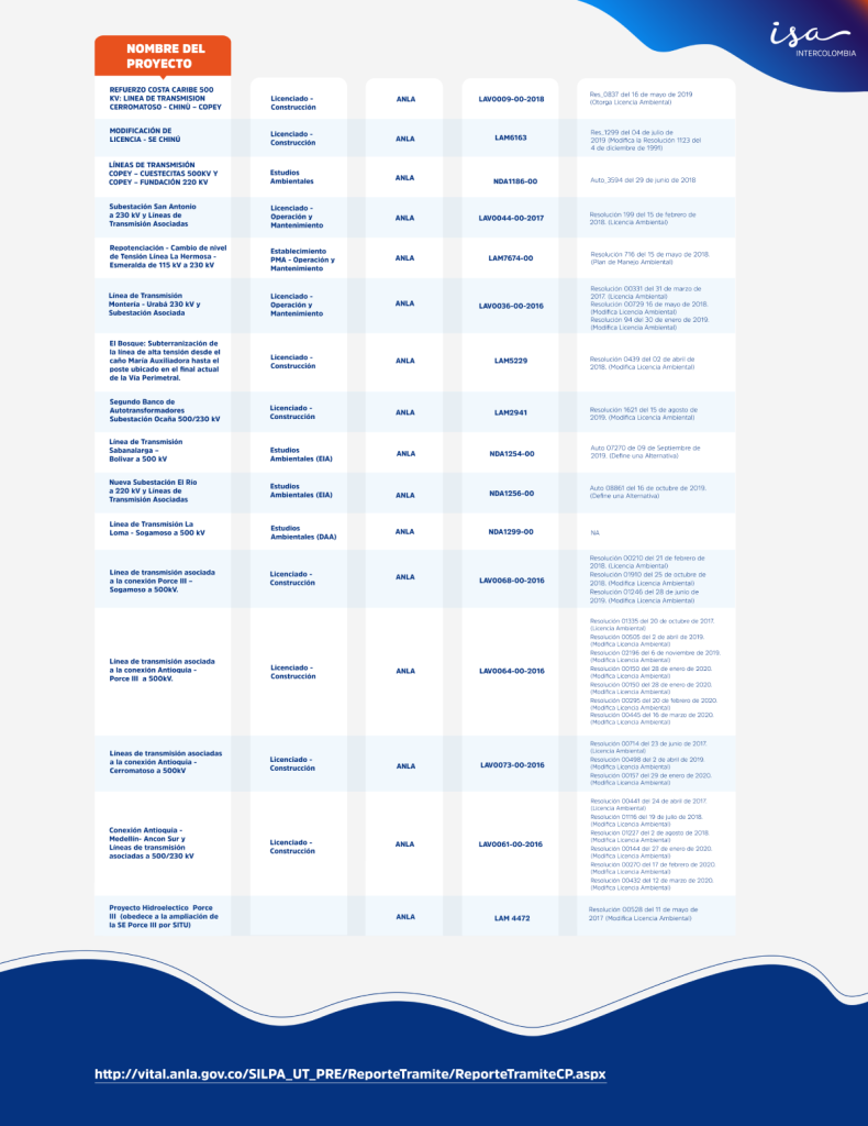 Los documentos correspondientes a cada expediente son de consulta pública en el sitio de la Autoridad Nacional de Licenciamiento Ambiental ANLA.